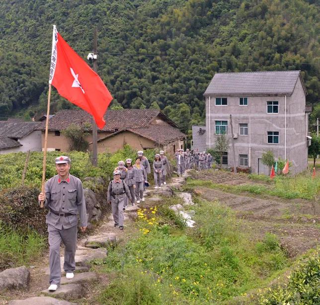 石角村、廟下鄉(xiāng)這片土地上,擁有著光榮的革命傳統(tǒng),承載著豐富的紅色歷史記憶。全體黨員同志沿著龍游第一條通景公路溪毛線赴廟下鄉(xiāng)長生橋村,沿途欣賞天然畫卷萬畝大竹海,參觀傅春齡故居,后在“紅軍服務(wù)部”換上紅軍服裝,擎著軍旗、扛著長槍背著斗笠唱著紅歌,向紅軍古道出發(fā),憶苦思甜,珍惜美好生活。下午,大家參觀了嚴(yán)村華崗紀(jì)念館,聽講解員講述華崗的生平事跡。