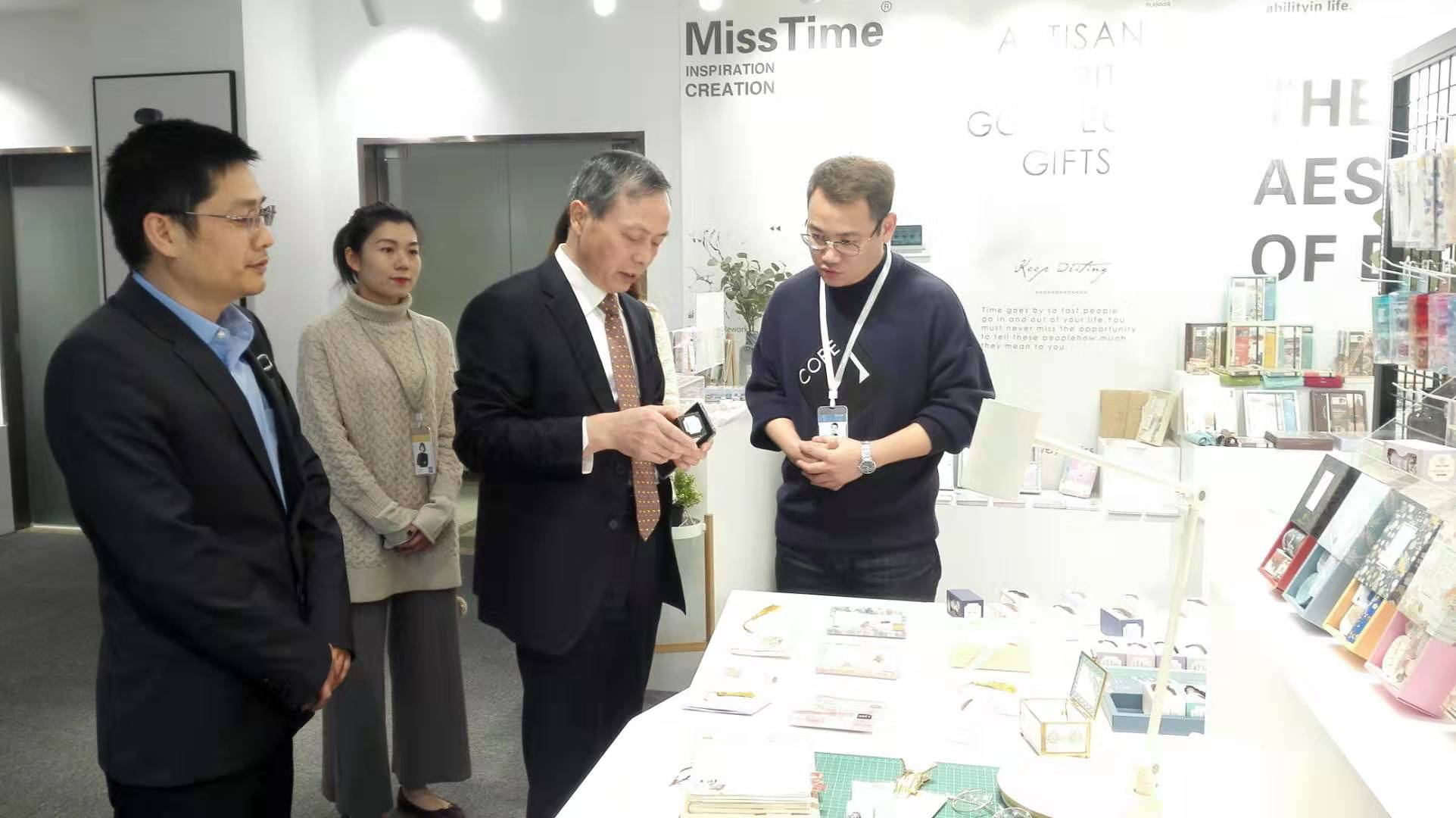 虞岳明一行先后考察了拾光藝創(chuàng)文創(chuàng)產(chǎn)品展示區(qū)、文創(chuàng)內(nèi)容輸出演示區(qū)和產(chǎn)品組、品牌組、插畫組等員工工作區(qū),并與拾光藝創(chuàng)核心團隊進(jìn)行座談。在聽取相關(guān)情況匯報后,虞岳明對拾光藝創(chuàng)工作給予充分肯定。一是拾光藝創(chuàng)團隊年輕富有活力,協(xié)作精神好,危機意識強。二是善于運用頭腦風(fēng)暴,注重產(chǎn)品創(chuàng)意設(shè)計,注重提供增值服務(wù),業(yè)務(wù)發(fā)展勢頭好。三是年輕黨員多,企業(yè)文化很有特色。他指出,拾光藝創(chuàng)發(fā)展實踐證明,集團公司大力培育工美文化主業(yè),推進(jìn)文化與旅游、創(chuàng)意、數(shù)字經(jīng)濟深度融合發(fā)展的路子是正確的。