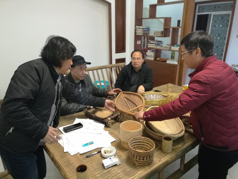 12月3-5日,清華大學(xué)美術(shù)學(xué)院林樂成教授、杭師大美術(shù)學(xué)院周小甌教授一行又來到石角、寺下二村開展結(jié)對幫扶消薄工作。林教授帶來了國內(nèi)外交流時搜集的樣品,精心繪制了竹纖維工藝品的圖案、款式和制作工藝,耐心與村里的竹編工匠進行技藝的交流和互動,爭取明年4月拿出3-5件樣品分別在林樂成教授上海工作室和石角民宿展示。
