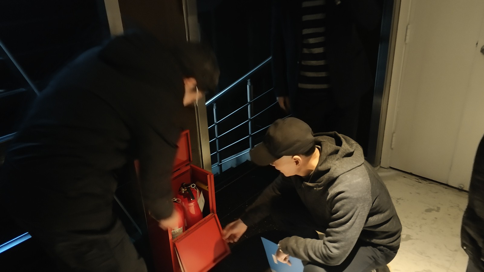 隨后檢查組抽查了酒店五樓的滅火器、室內(nèi)消火栓是否完好。疏散通道內(nèi)應(yīng)急照明和疏散指示標(biāo)志是否正常工作。模擬了酒店客人從五樓通過疏散樓梯到達(dá)一樓室外。檢查了酒店一樓沿街商鋪的消防器材配備和疏散通道情況。