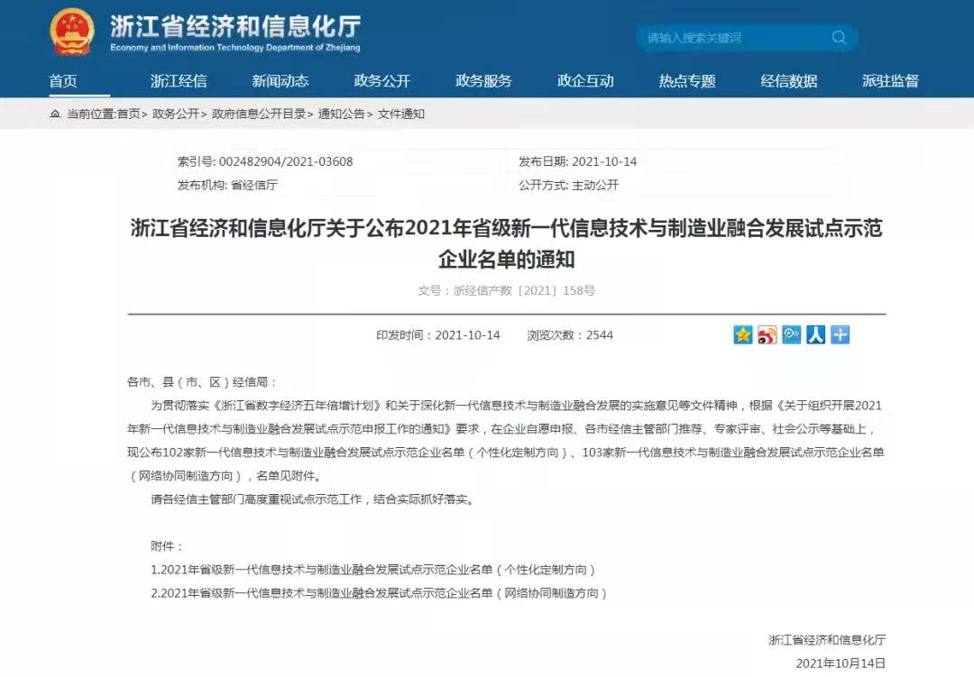 日前,浙江省經(jīng)濟和信息化廳公布了103家新一代信息技術(shù)與制造業(yè)融合發(fā)展試點示范企業(yè)名單(網(wǎng)絡(luò)協(xié)同制造方向),省二輕集團下屬申達公司成功入選。